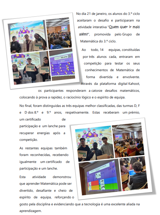 No dia 24/03/2025, um grupo de alunos do Agrupamento de Escolas Maria Keil, acompanhados pela Diretora de Turma, Cristina Lavadinho, deslocaram-se à escola sede do Agrupamento de Escolas Cardoso Lopes, para se apropriarem da dinâmica operacional do plano de ação do projeto Eco-Escolas implementado na E.B. 2,3 Cardoso Lopes. Foi uma manhã gratificante de partilha, cujo percurso traçado foi conduzido pelas professoras Graça Romão e Maria do Céu, onde a magia se manifestou nos animais, com o Assistente Operacional Diogo Lopes, e na Ludoteca, com a Animadora Sociocultural, Paula Melo.