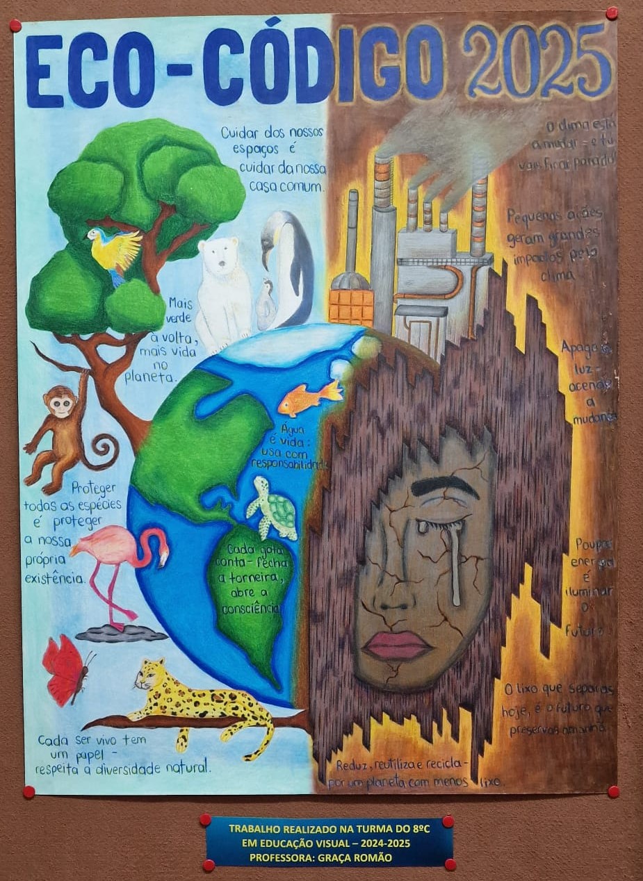TRABALHO "POSTER ECO-CÓDIGO" REALIZADO NO ANO: 8°C, ANO LETIVO 2024-2025 NO ÂMBITO DE ECO-ESCOLAS NA DISCIPLINA DE EDUCAÇÃO VISUAL E ORIENTADO PELA PROFESSORA GRAÇA ROMÃO
