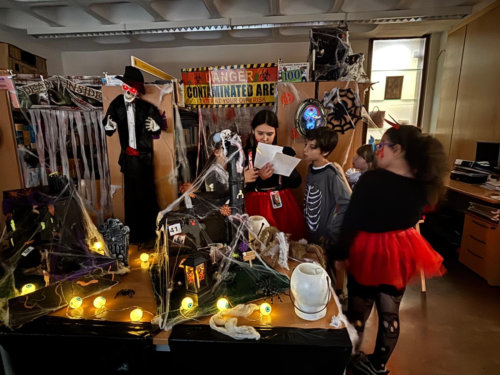 A biblioteca transformou-se num Escape Room assustador! 👻📚No âmbito da disciplina de Inglês, os alunos enfrentaram várias missões em grupo… e superaram-nas a todas!Houve desafios, sustos, gritos, muita diversão e animação! Imaginem……